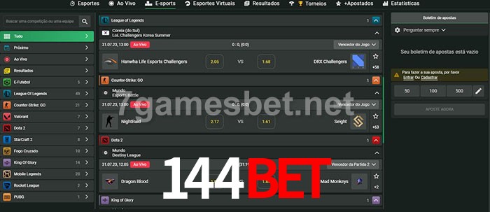 O 144bet oferece uma grande seleção de opções de apostas em e-sports com probabilidades competitivas